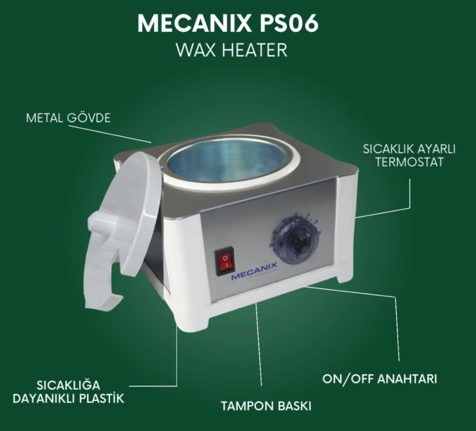 Mecanix PS06 Sir ağda makinesi Metal gövde 500ml kapasite Konserve ağda ısıtabilir Isı ayarlı On/Off ışıklı anahtarlı