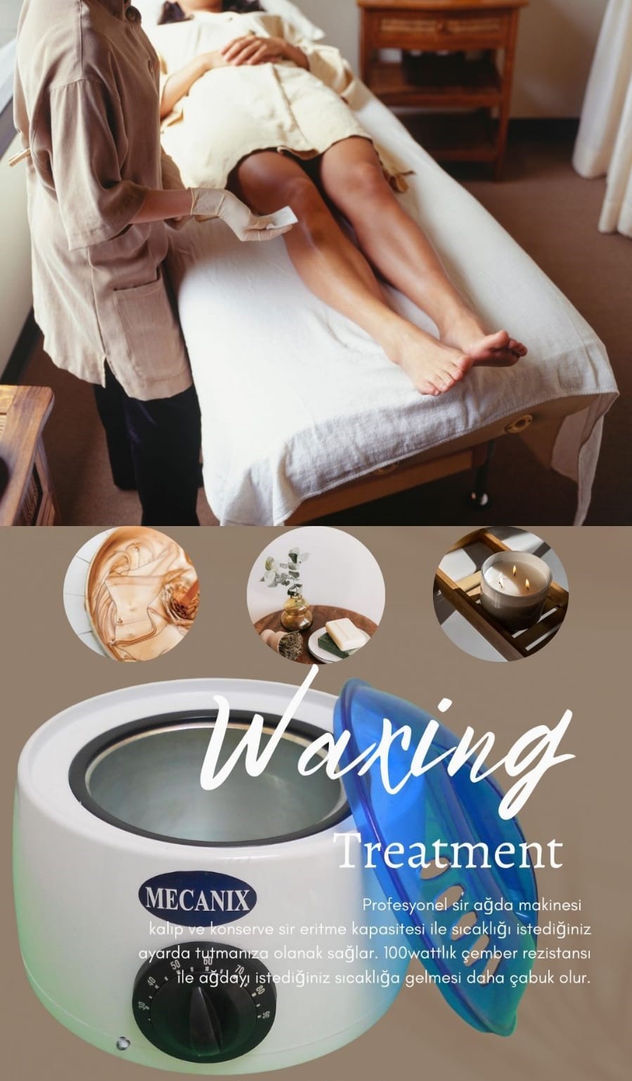 .Dikkat: Isınan sir malzemesini cildin hasas bölgesine uygulamadan önce sıcaklığı el yordamıyla kontrol ediniz.